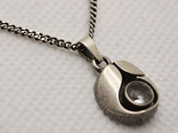 銀の艶消しや燻加工、クリスタルの輝きなど 異なるエレメンツの組み合わせの中に 自由を表現したペンダントです。 デザイナーのKarl Laineはフィンランドジュエリー界で 最も権威のあるゴールドスミスの称号を与えられました。 ロック・クリスタルの直径は5ミリです。 ペンダント・トップの側面にKarl Laineのイニシャルである "KL"が刻まれています。 チェーンもFinnFeeling製となります。 |