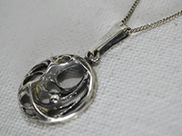 ブルータリズム精神が感じられる 粗削りで危うい雰囲気が漂うペンダント。 Spiderweb(蜘蛛の巣)と名づけられたシリーズです。 シリーズの中では小ぶりなサイズです。 デザイナーのKarl Laineはフィンランドジュエリー界で 最も権威のあるゴールドスミスの称号を与えられました。 ペンダント・トップの側面にKarl Laineのイニシャルである "KL"が刻まれています。 長さ12ミリのバチカン部分に刻印が入っています。 チェーン(純度925w)は別メーカーの製品です。 |